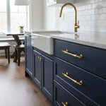 These textured solid brass pulls bring a subtle yet striking upgrade to ordinary hardware — turning every touchpoint into a design detail.